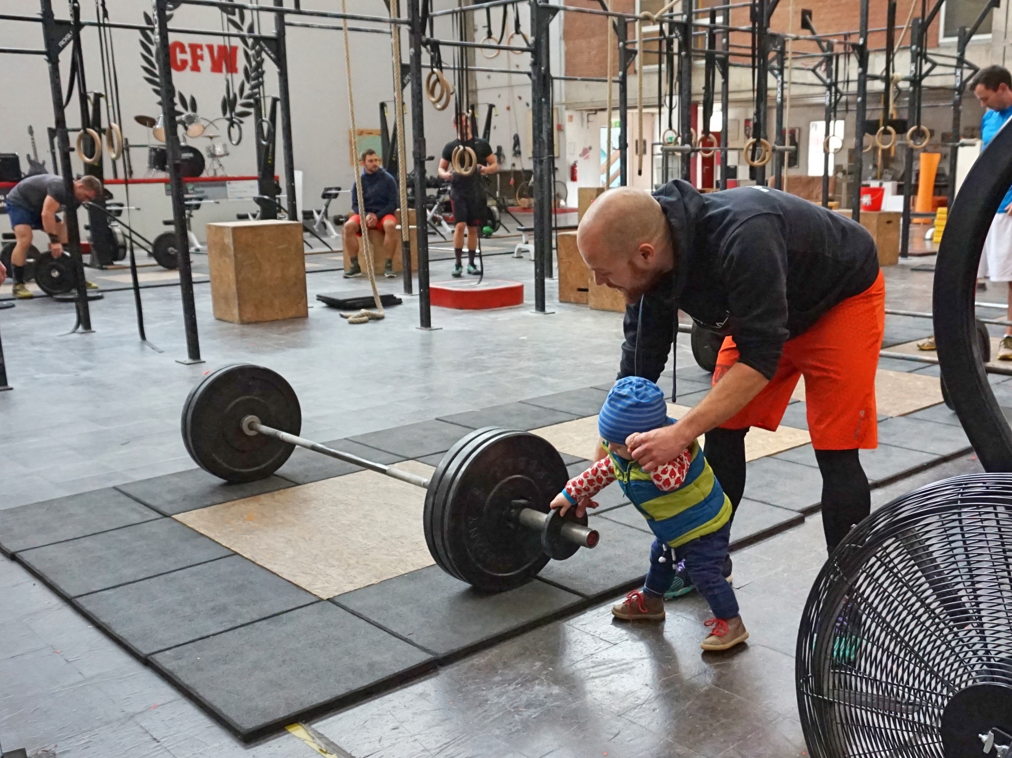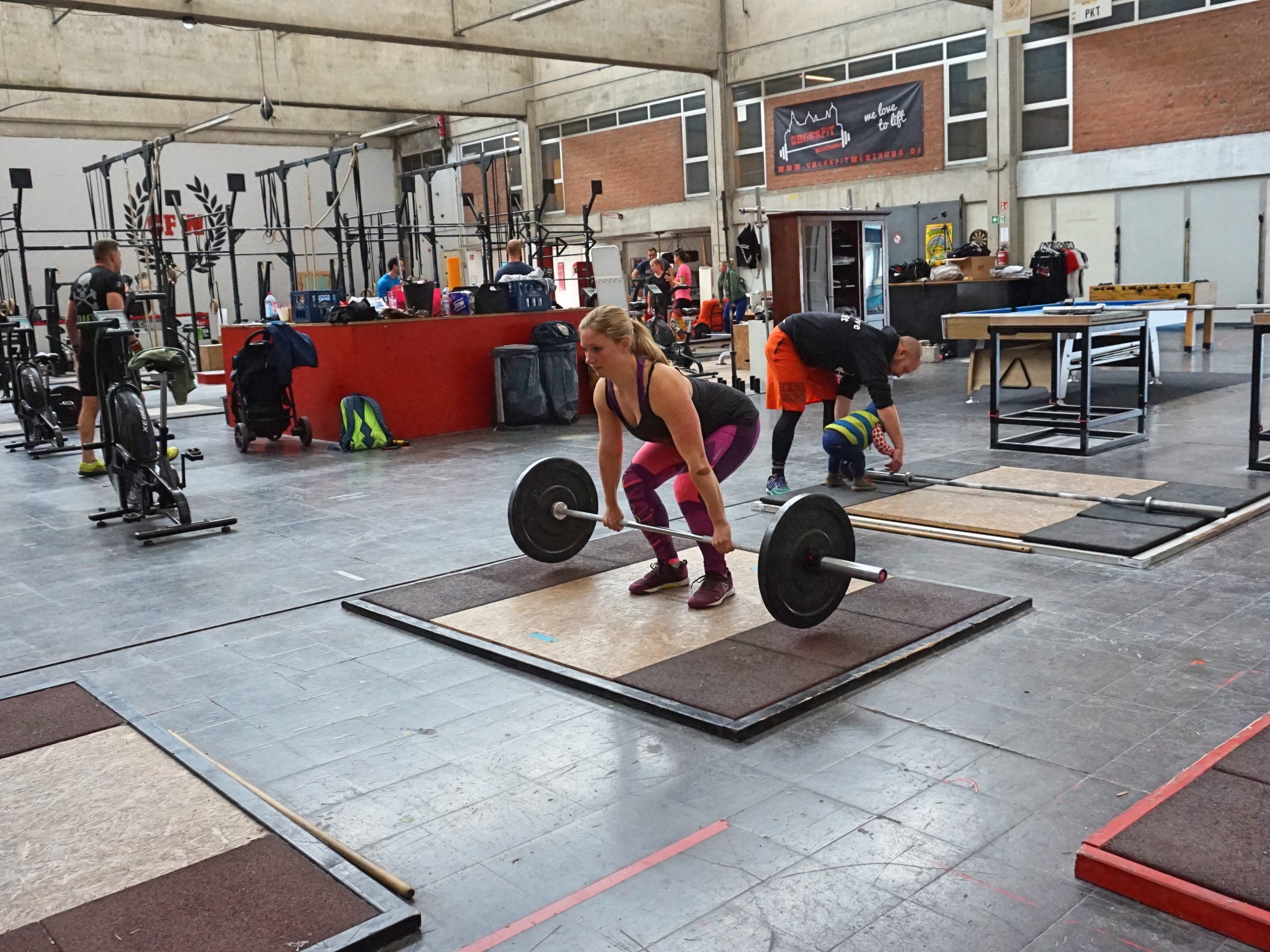 Vrony: Nachdem Jonathan am 23.12.2016 zur Welt kam stand er natürlich an erster Stelle. Seit März 2017 bin ich wieder regelmäßig bei CrossFit Würzburg. Der Einstieg war hart. Gerade die Organisation ist schwieriger mit Kind. Wer passt auf meinen Sohn auf, wenn ich an der Hantelstange stehe? Mein Mann und ich haben uns untereinander abgestimmt. Gerade die Stillzeit war etwas kompliziert, da der Hunger eines Babys ganz klar über dem Training steht! Doch auch von anderen Athletinnen gab es Hilfe. Sonja muss ich neben meinem Mann besonders danken. Sie hat sich zur Betreuung vor Ort angeboten während ich trainiere. Außerdem ist das alles nur durch die generell kinderfreundliche Stimmung bei CrossFit Würzburg möglich. Auch andere Eltern haben ab und zu Kinder dabei.