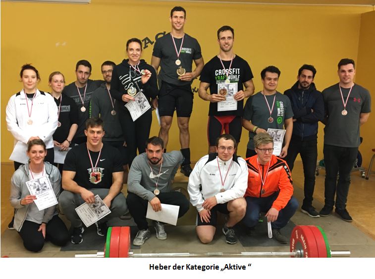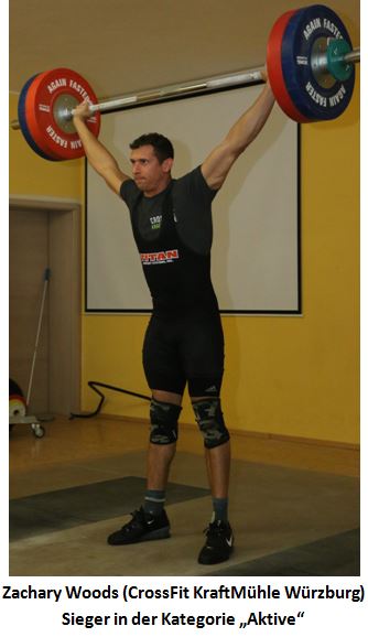 Die "Aktiven"-Klasse war in der Hand der CrossFit Kraftmühle Würzburg, die alle Podestplätze belegen konnten. Sieger wurde Zachary Woods mit 364 kg Zweikampf und 311,73 Punkten. Nicole Winterholer holte mit 298,64 Punkten Platz 2, dicht gefolgt von Alexander Schmitt mit 296,87 Punkten.