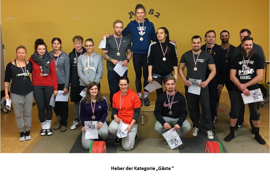 Traditionell lud der Athletenclub Schweinfurt zum Offenen Bezirksturnier ein. Nach der guten Resonanz im letzten Jahr wurde auch diesmal eine zusätzliche Gästeklasse für Heber ohne Gewichtheberstartlizens angeboten. Mit 30 Meldungen war dies die am stärksten besetzte Klasse. 75 Teilnehmer vom AC 82 Schweinfurt (15 Starter), CrossFit Kraftmühle Würzburg (11), KSV Kitzingen (9), CrossFit Central Wiesbaden (6), CrossFit Osnabrück (6), TSV Röthenbach (6), Fitnesslounge - X-Fitter Erlangen (5), CrossFit Erlangen (4), CrossFit Coblenz (3), ASC Zeilsheim (1), SV Einheit Altenburg (1), TSG Augsburg (1), GV Eisenbach (1), ASV 1981 Würzburg (1), CrossFit Ansbach (1), ASV Ladenburg (1), Nürnberg (1), AC Germania Aschaffenburg (1) und 1. AC Bayreuth (1) meldeten sich an um in fünf Kategorien die Sieger zu ermitteln.