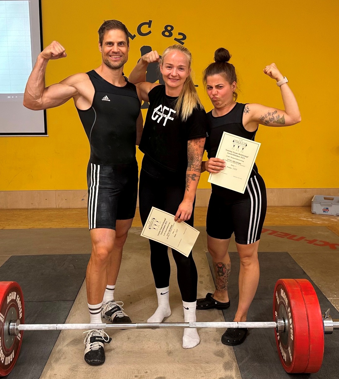 Weitere neue Bestleistungen hoben Johannes Horwedel mit 110 kg im Reißen und Verena Horwedel mit 84 kg im Stoßen und 147 kg im Zweikampf.