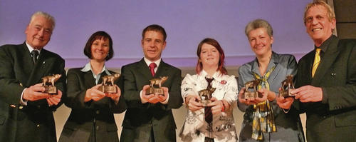 Sechsmal Schwein gehabt: Stolz präsentieren (von links) Otto G. Schäfer, Susanne Strätz, Uwe Lang, Franziska Langhammer, Susanne Pfister und Michael Böhme (stellvertretend für Hans Friedrich) ihren „Felix“.