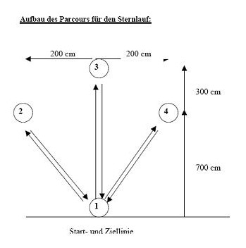 - Es wird ein Parcours aus 4 Medizinbällen gemäß folgender Beschreibung und abgebildeter Skizze aufgebaut: